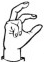 На ћирилици написано ТЕОДОРА БУЗГАНОВИЋ састоји се из 17 слова [?]. Исписано ћириличном једноручном азбуком за глувонеме: